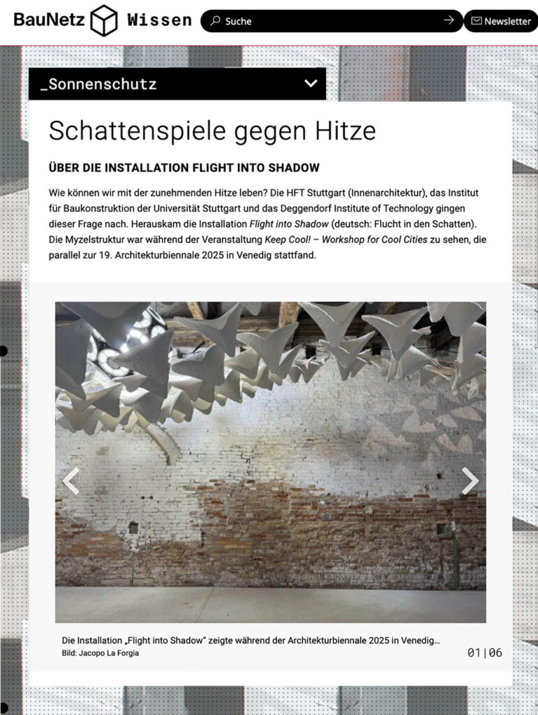 05/-10/2025 – „Flight into Shadow“, Installation im Rahmen der Ausstellung „keep cool! Workshop for cool cities“ parallel zur Architekturbiennale, im Salone Verde art & social club, Venedig