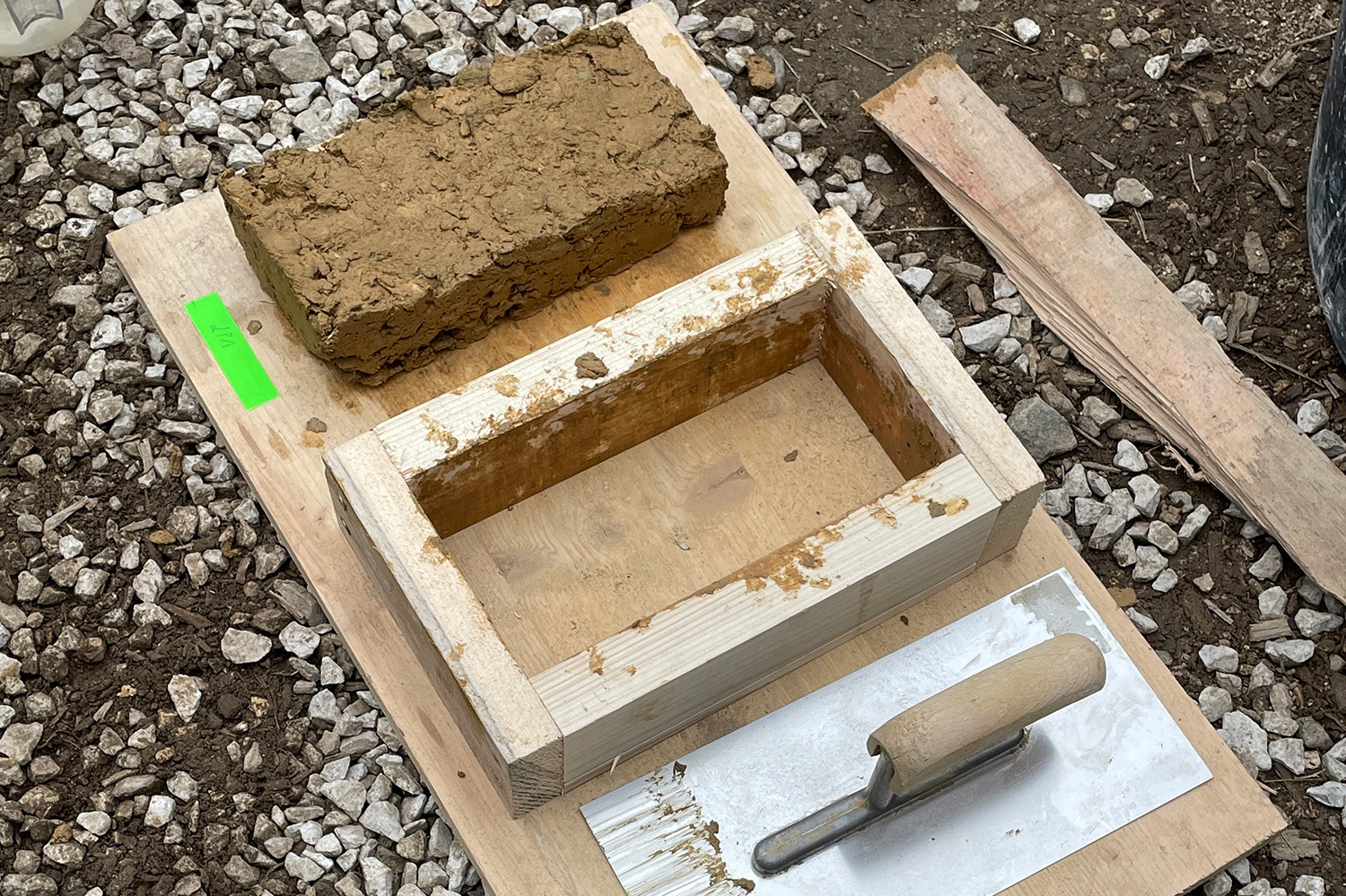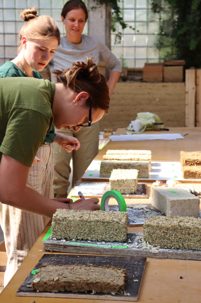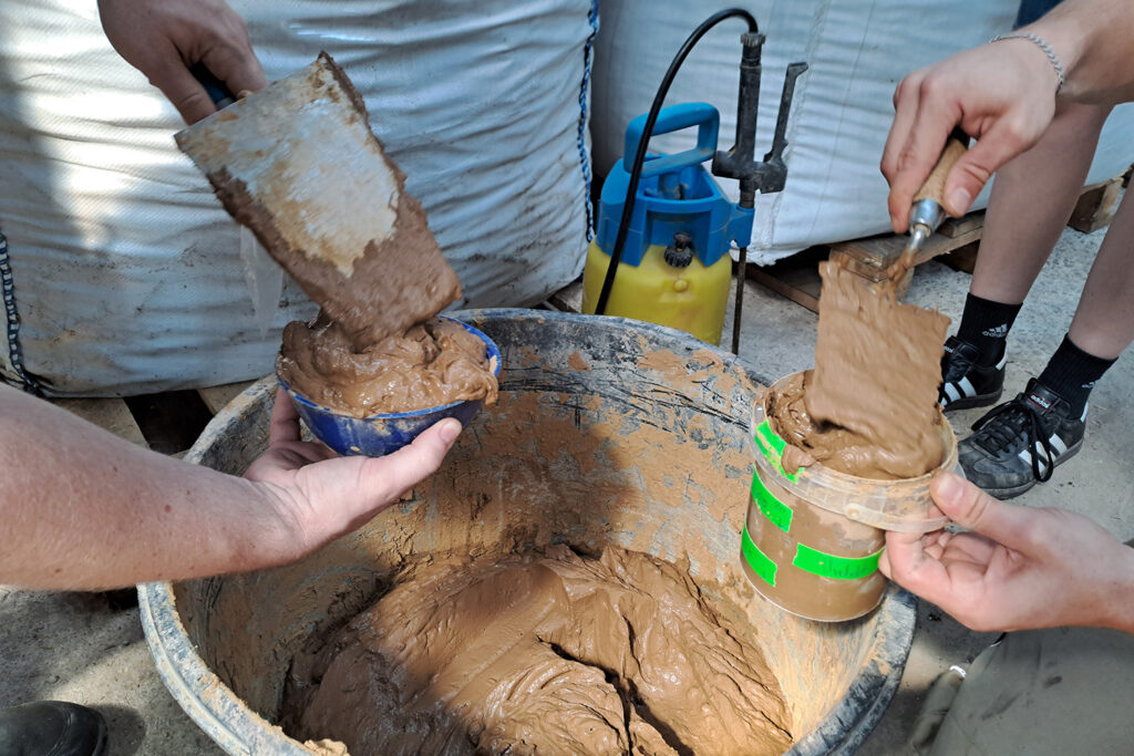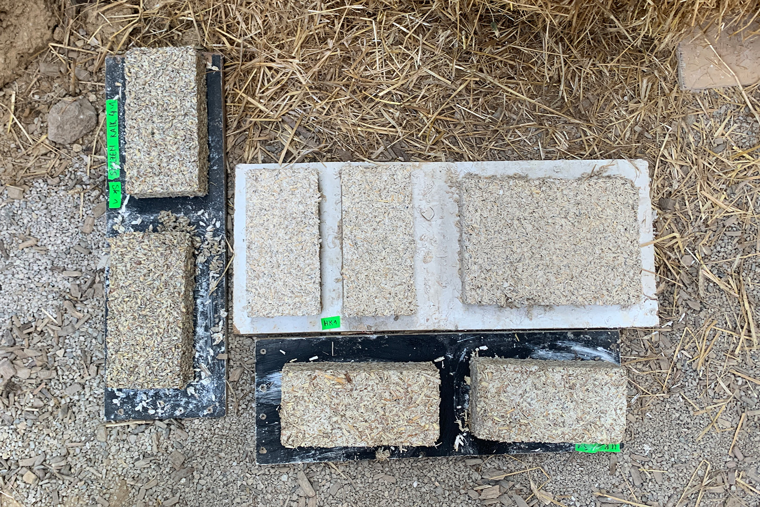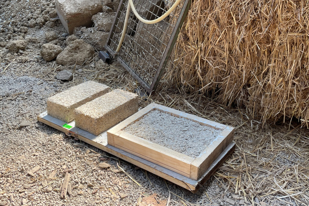 Daraufhin haben wir in Kooperation mit lokalen Akteur:innen die Region erkundet: In kleinen Fieldtrips wurden Proben gesammelt und in einer Ausstellung zusammengeführt. Das Baustoffpotenzial ausgewählter Roh- und Abfallstoffe wurde in praktischen Experimenten erprobt. Tests mit verschiedenen Zusammensetzungen eröffnen Visionen, wie die Nutzung bioregionaler Materialien zur Bauwende beitragen kann.