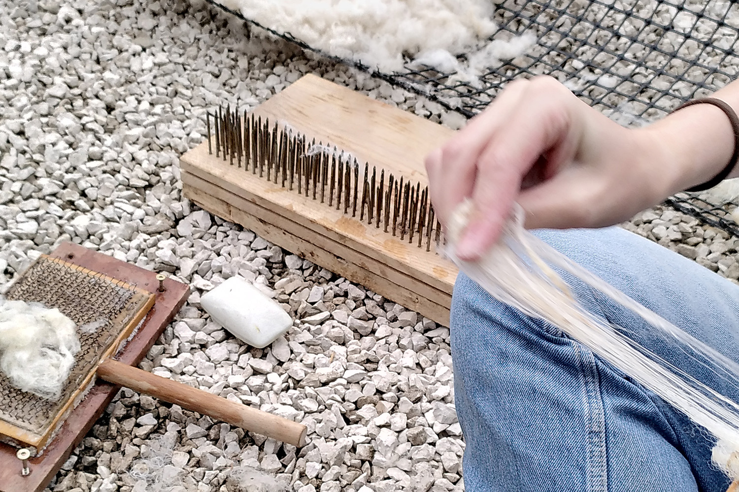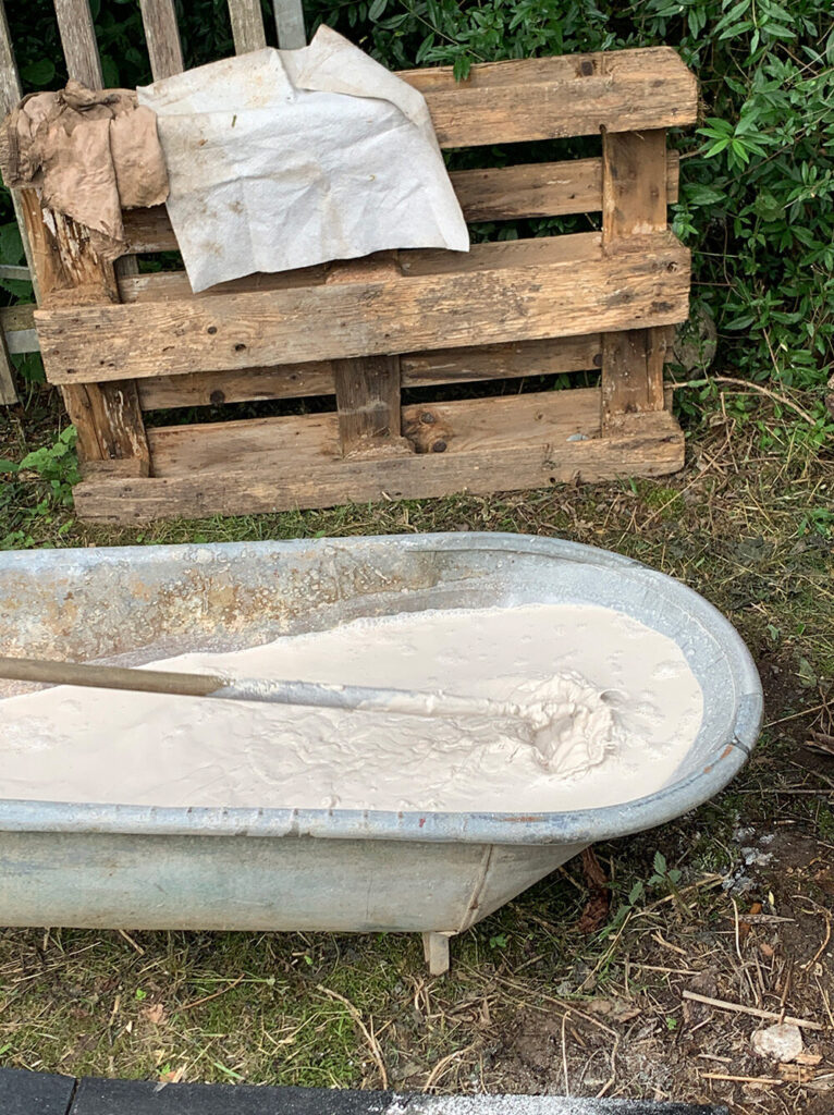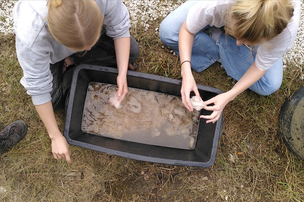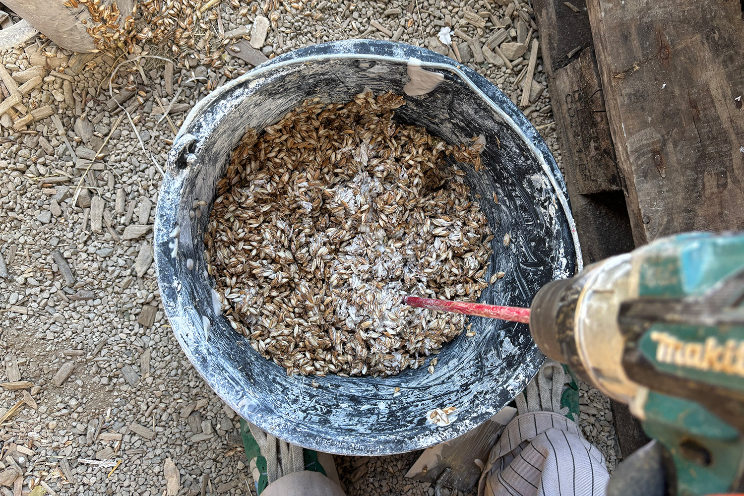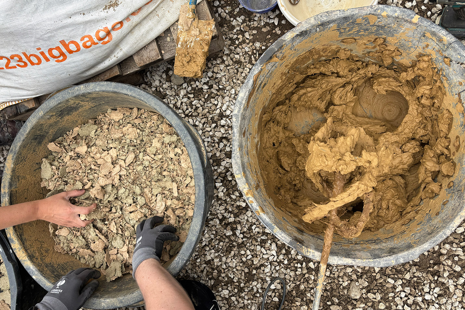 Daraufhin haben wir in Kooperation mit lokalen Akteur:innen die Region erkundet: In kleinen Fieldtrips wurden Proben gesammelt und in einer Ausstellung zusammengeführt. Das Baustoffpotenzial ausgewählter Roh- und Abfallstoffe wurde in praktischen Experimenten erprobt. Tests mit verschiedenen Zusammensetzungen eröffnen Visionen, wie die Nutzung bioregionaler Materialien zur Bauwende beitragen kann.