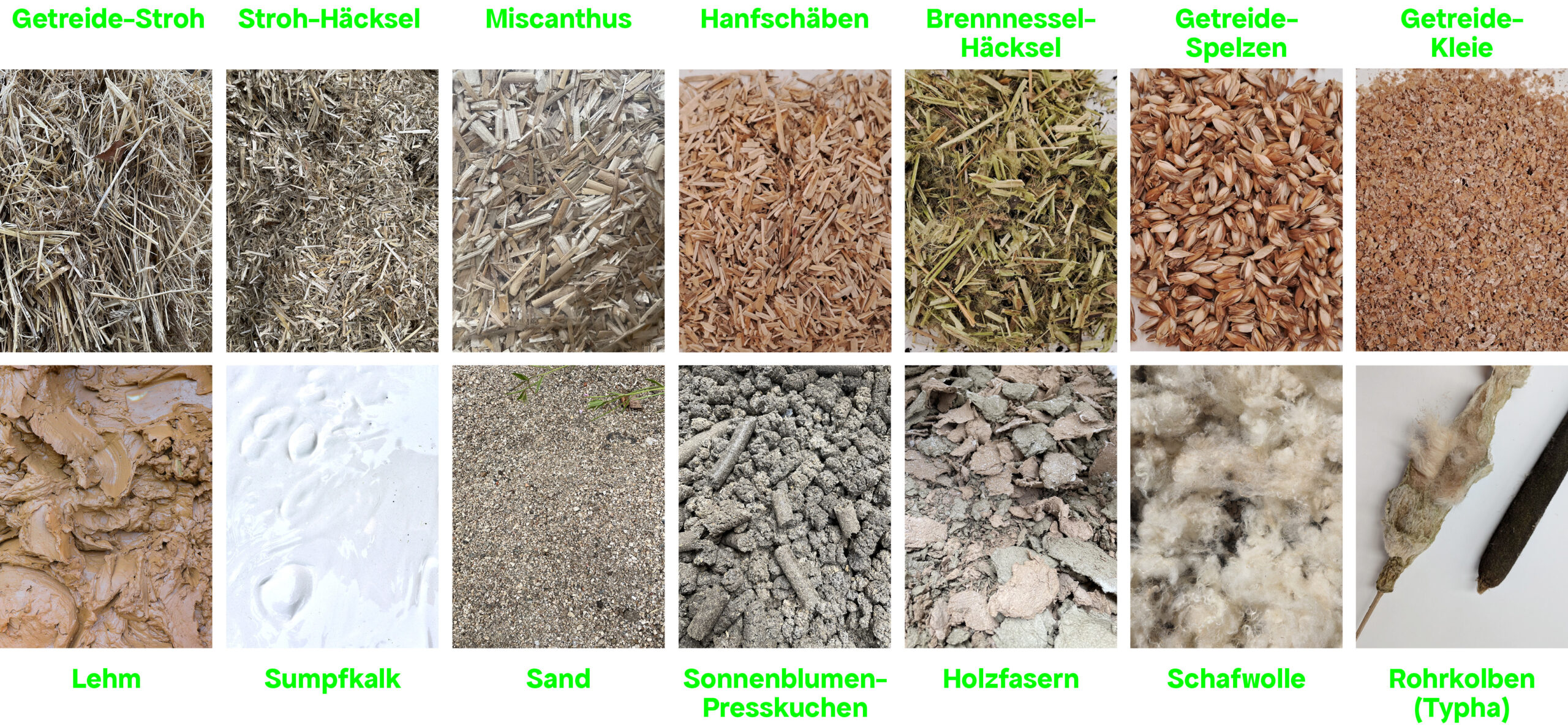 Welches Spektrum natürlicher Rohstoffe ist innerhalb einer Bioregion zu finden, und wie können diese als Baustoffe genutzt werden?