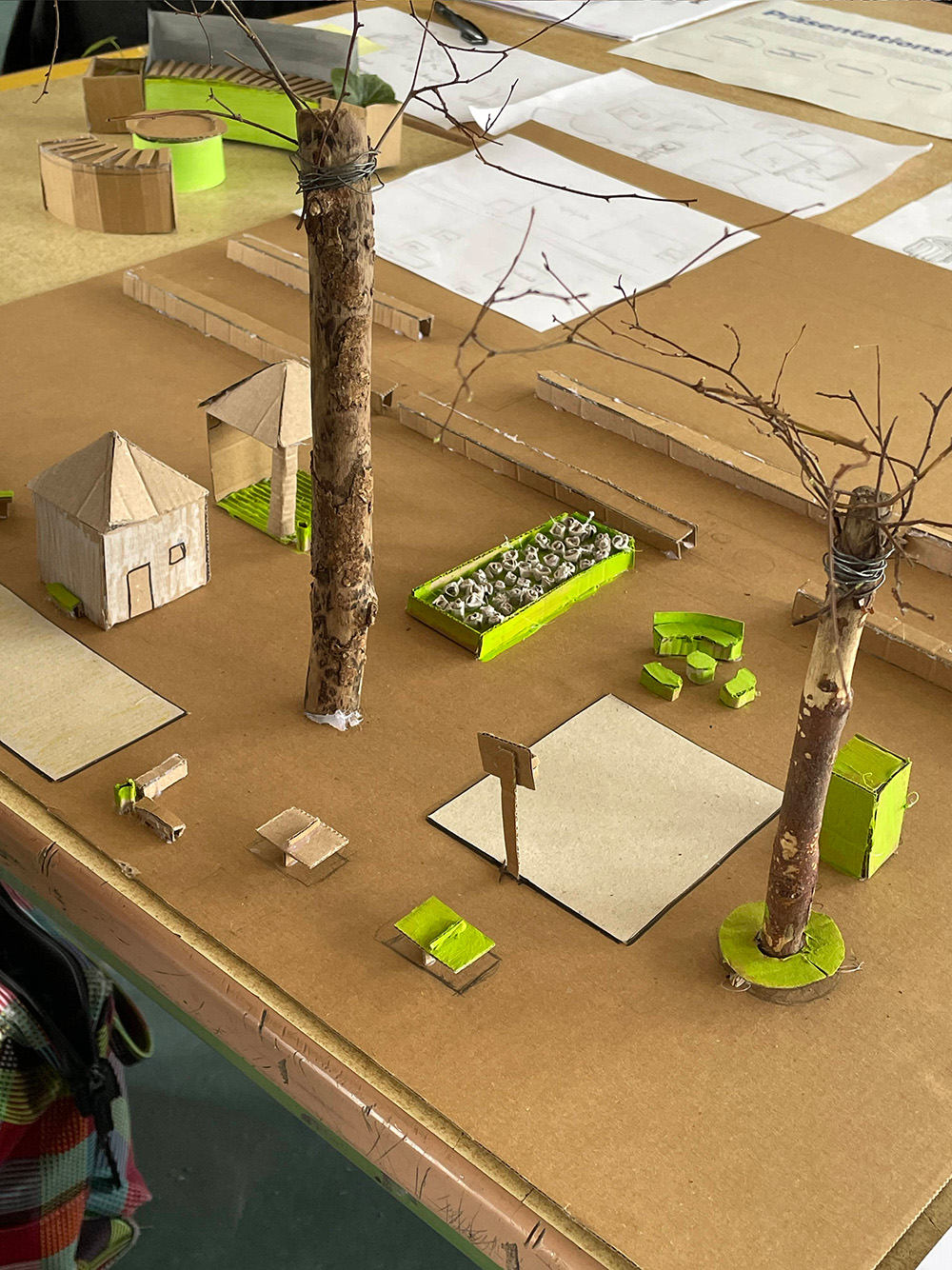 Dabei erfahren sie Design als Werkzeug für gesellschaftlichen Wandel und wenden zentrale Aufgaben von Gestaltung an: die Bedürfnisse einer sich wandelnden Gesellschaft zu reflektieren, verantwortungsvoll darauf zu reagieren und zielorientierte, zukunftsfähige Lösungen zu entwickeln. Um zudem die Präsentationsfähigkeiten der eigenen Ideen zu fördern, werden Präsentationsformate und -methoden vermittelt, die die Schüler:innen bei der Abschlusspräsentation anwenden.