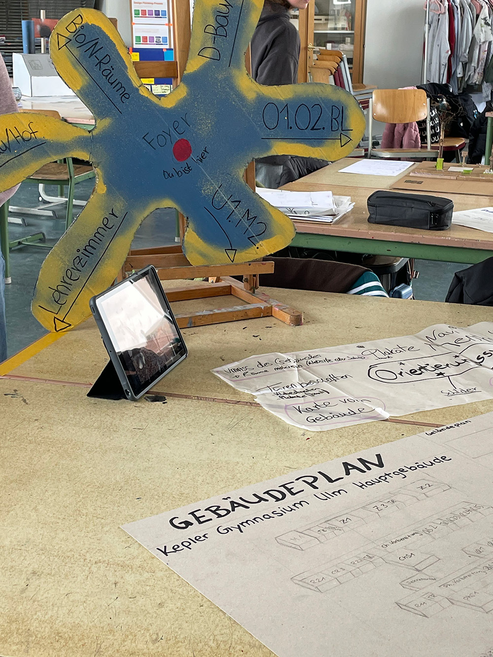 Ausgehend von selbst erkannten Problemstellungen entwickeln die Schüler:innen in Teams eigene Projektideen, die einen konkreten Mehrwert für ihre Schule oder ihr direktes Umfeld schaffen – z.B. Ort zur gemeinschaftlichen Nutzung an der Schule, eine Sharing-App für Arbeitsmaterial oder ein Bienenhotel für den Schulgarten. Im iterativen Design-Thinking-Prozess verbinden sie theoretisches Wissen mit Recherche, Umfragen und Prototyping und lernen, ihre Ideen Schritt für Schritt umzusetzen.