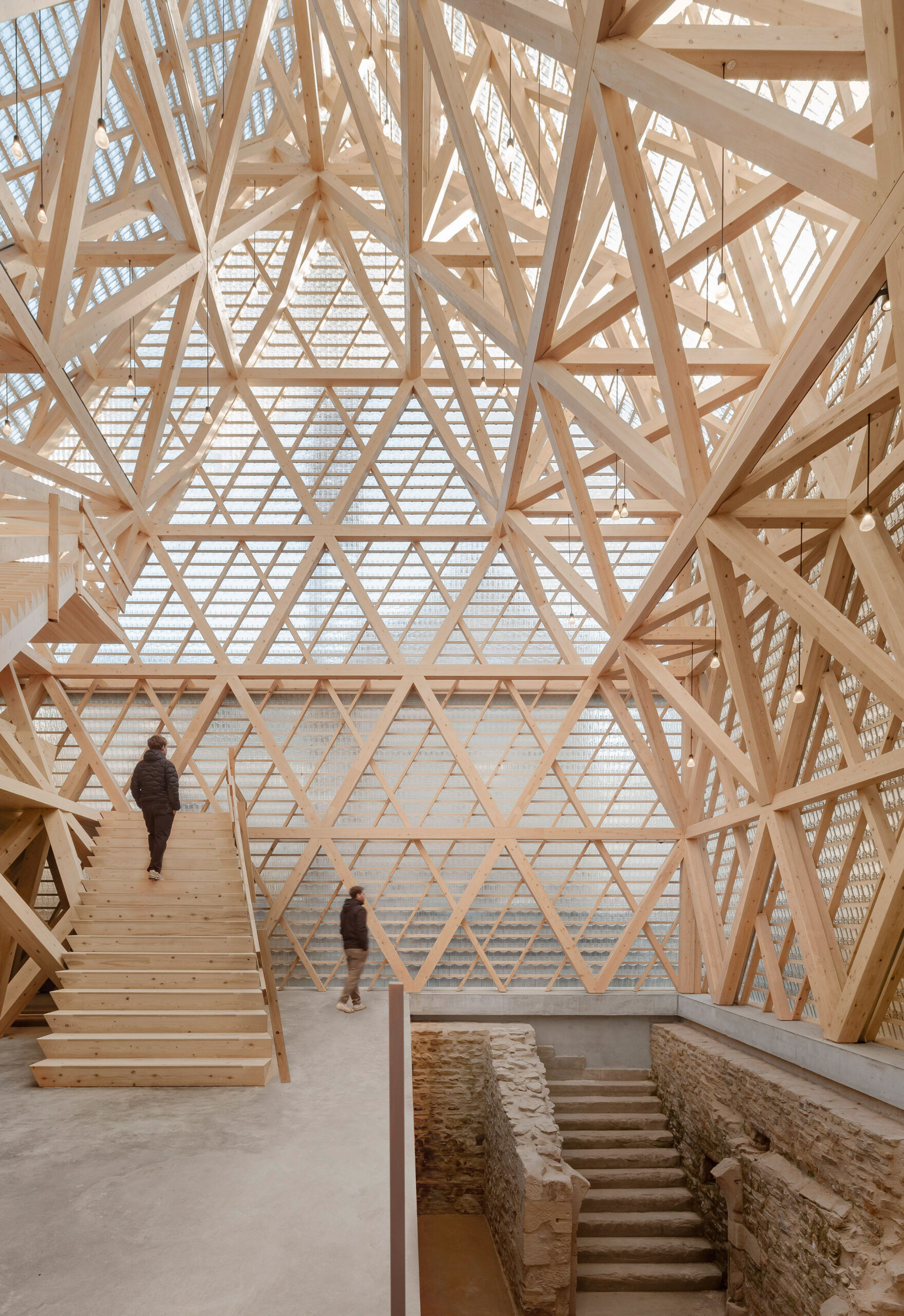 Der Neubau ist in seinem äußeren Erscheinungsbild zurückhaltend ausgebildet. Die innere Struktur besteht aus einem hölzernen Fachwerk, das die angrenzende Häuserzeile abstützt und das verlorene Volumen des historischen Hauses nachbildet. Der Neubau nimmt die barrierefreie Erschließung der Altbauten auf und bietet Raum für kleinere Veranstaltungen. Er ist vom Dach und über die Fassaden mit einer homogenen Schicht aus gussgläsernen Biberschwanzziegeln bekleidet. Je nach Lichteinfall, Reflexion und innerer Beleuchtung ist das dahinterliegende hölzerne Fachwerk mehr oder weniger sichtbar, das Gebäude wirkt durchscheinend oder glitzernd, wie eine Chimäre. Die neu gestaltete Hülle lässt das Innere verschwommen erscheinen, wie bei einer lang zurückliegenden Erinnerung. Etwas, das in der Erinnerung derer fortbesteht, die das alte Haus noch kannten, wird für zukünftige Generationen wieder sichtbar gemacht. Die einst stadtbildprägenden Gebäude werden in ihrer historischen Ensemblewirkung wieder erlebbar und Geschichte als öffentlich zugängliches »Exponat« präsentiert.